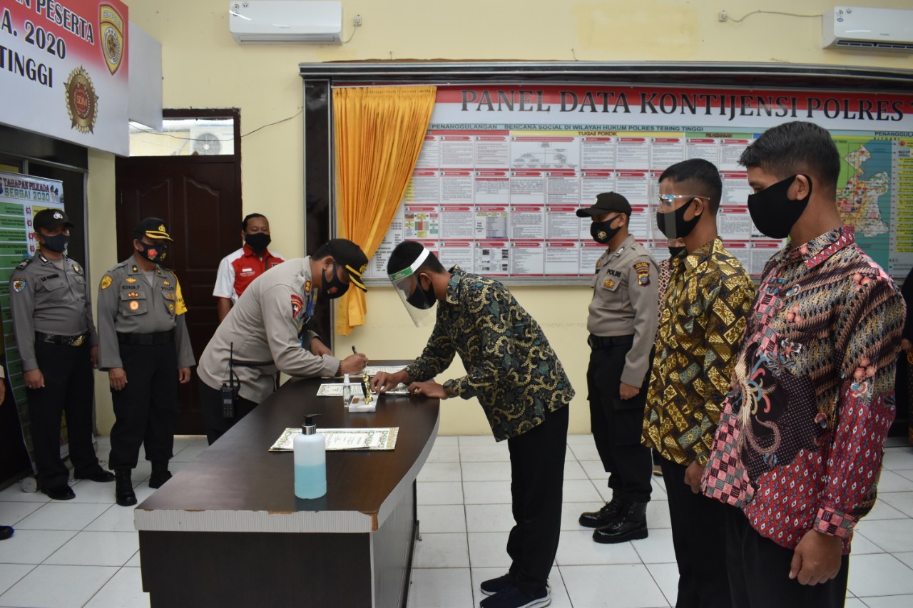 Penandatanganan Pakta integritas itu dilaksanakan langsung di Polres Tebing Tinggi melalui sarana Vidcon secara Virtual dipimpin Kapolda Sumut Irjen Pol Martuani Sormin Siregar.