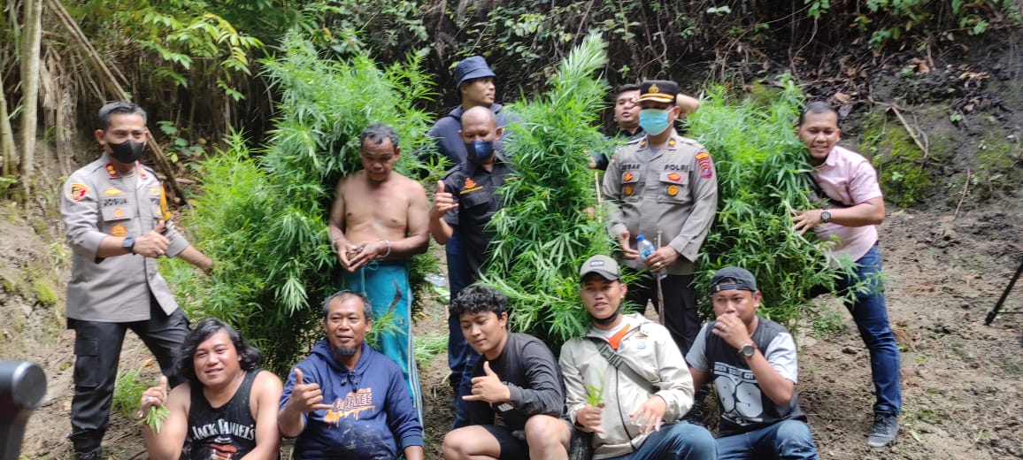 Bersama Kasat Narkoba AKP Natar Sibarani SH mengungkap penemuan ladang ganja dengan LS tersangkanya.