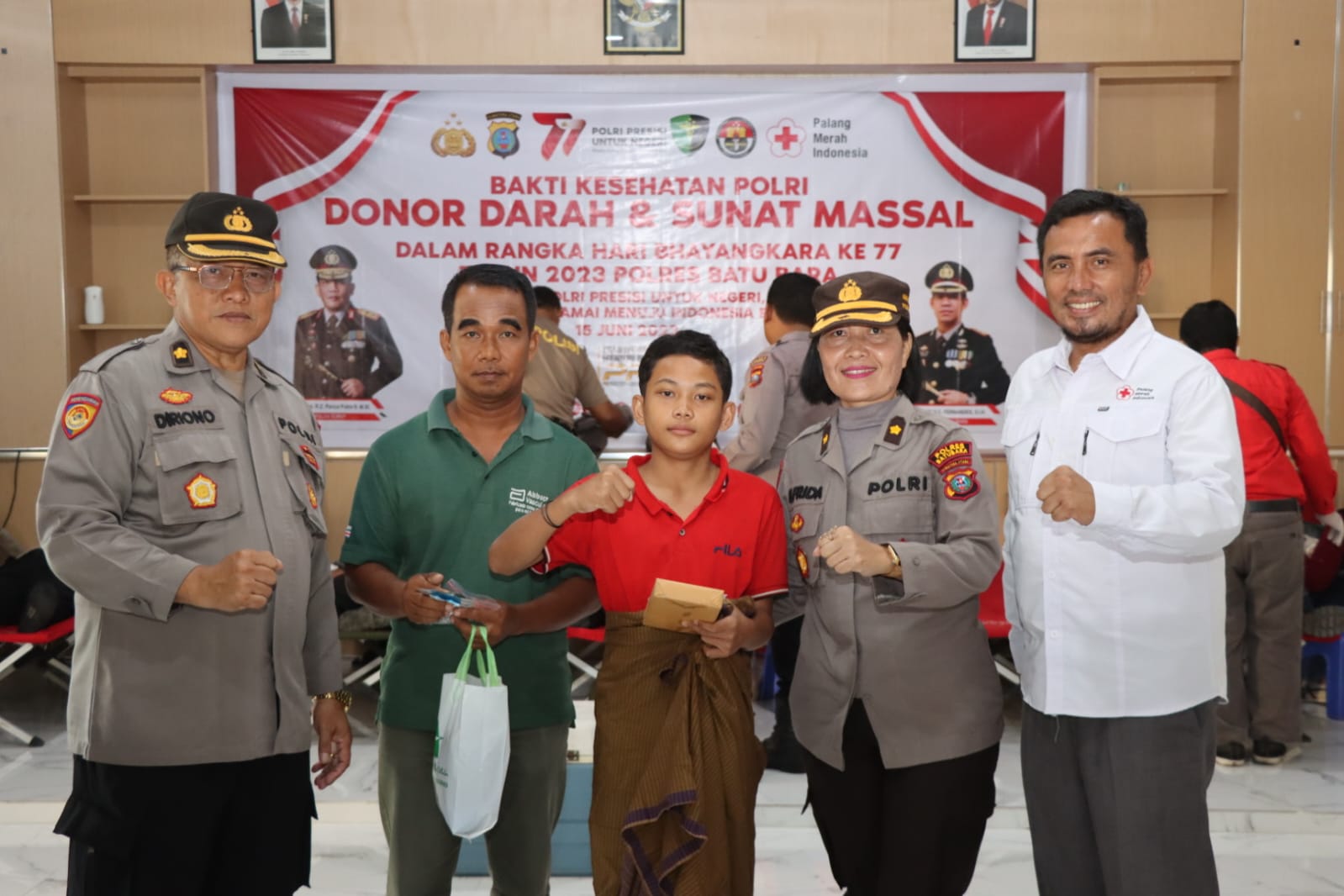 BATU BARA| TRANSPUBLIK.co.id – Rangkaian HUT Bhayangkara Ke-77 di Polres Batu Bara terus dilakukan, Kamis (15/6) 80 orang lakukan donor darah dan 36 anak dikhitan di Aula Bhayangkari, Mapolres Batu Bara.