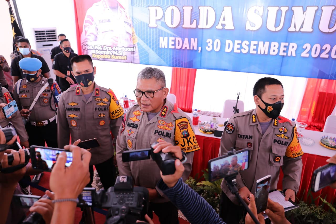 Transpublik.co.id ] MEDAN- Kapoldasu Irjen Pol. Drs. Martuani Sormin,M.Si memimpin konferensi pers akhir tahun 2020, Rabu (30/12) siang bertempat di Mako Sat Brimob Poldasu