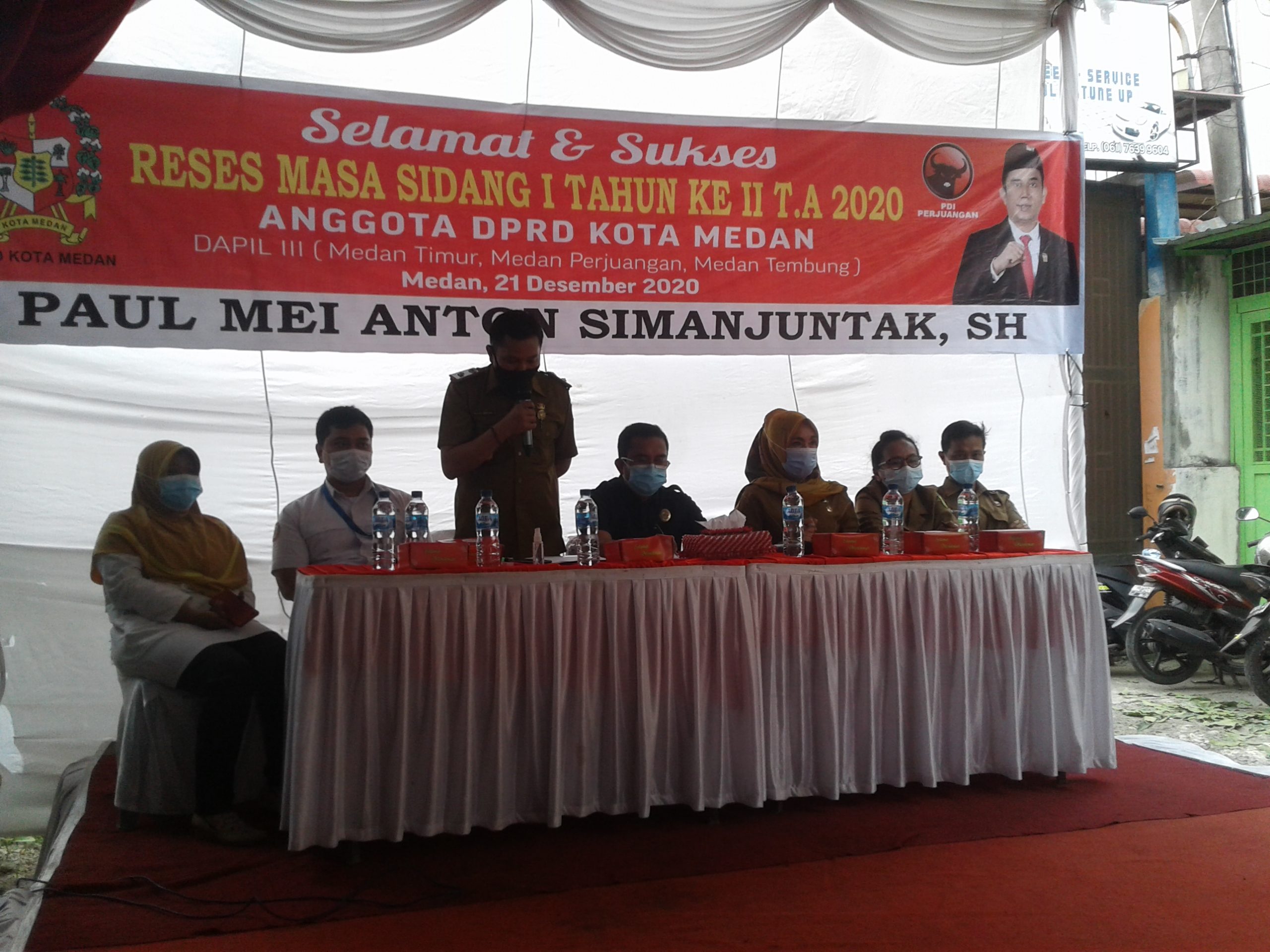 Transpublik.co.id ] Medan-Lurah Alfian Siregar SE M.SP Kel Sidodadi Kec Medan Timur, hadiri rangka acara Reses masa sidang I,tahun ke II T.A 2020, anggota DPRD Medan dari fraksi PDIP, Bapak Paul MA Simanjuntak SH, sekira pukul 14:30 Wib s/d selesai Senin (21/12/20) di Jln Seikera Kel Sidodadi Kec Medan Timur