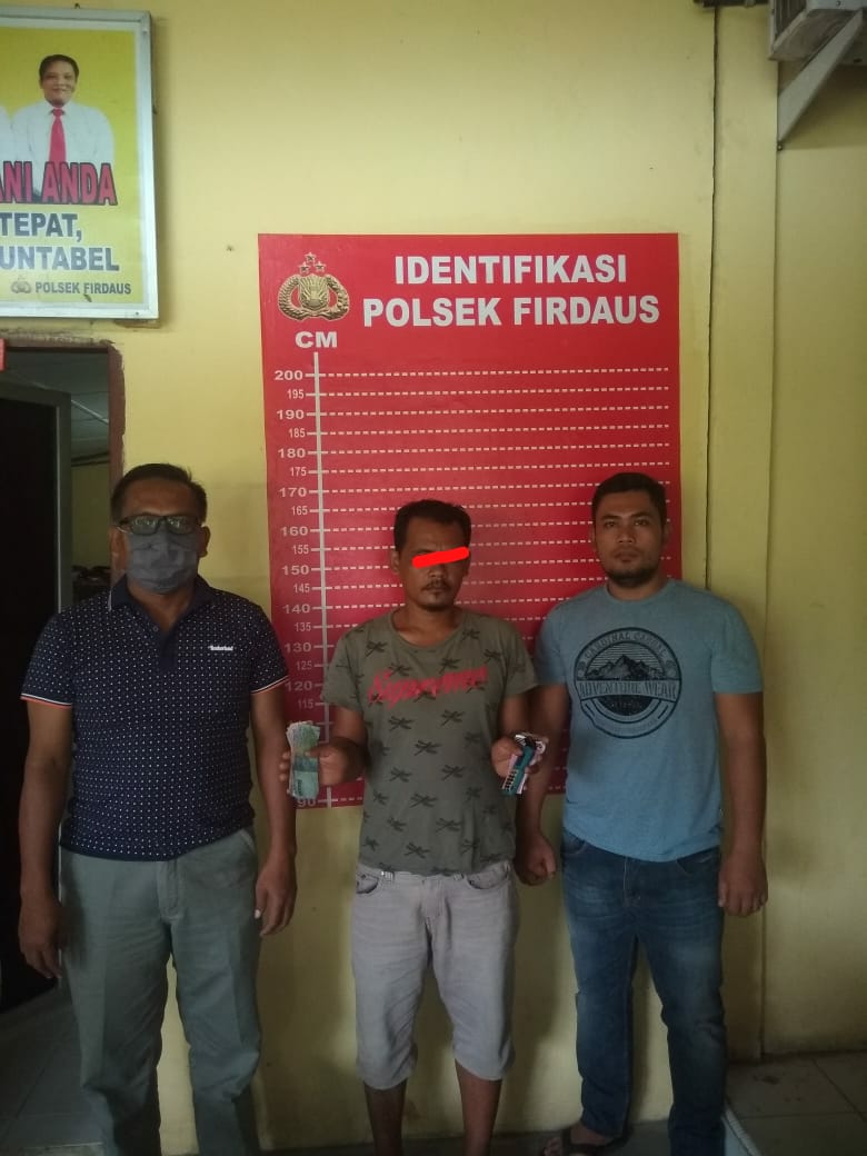 Atas informasi tersebut, Tekab Polsek Firdaus melakukan penyelidikan di lokasi tempat kejadian perkara. Setelah tiba dilokasi melihat di sebuah warung tuak terlihat satu orang lelaki sedang duduk sambil menunggu pemasang judi KIM. Tanpa basa basi team langsung melakukan penangkapan.