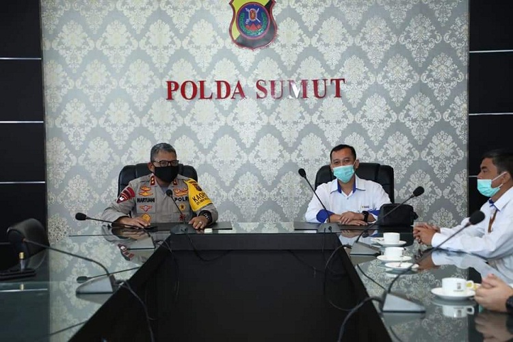 MEDAN | TRANSPUBLIK.co.id – Kapolda Sumut Irjen Pol Drs Martuani menerima Silahturahmi dari PT Indonesia Power PLTU di Mapoldasu, Senin (22/6/2020).