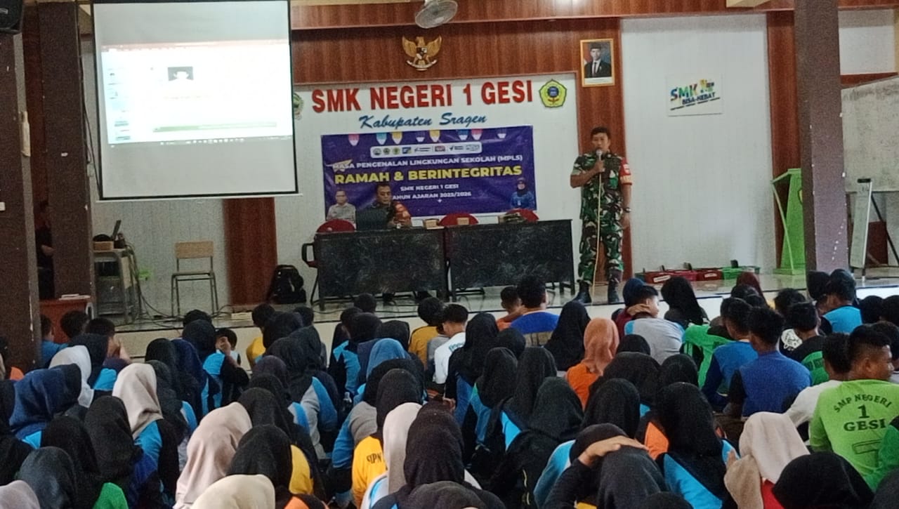 SRAGEN – Dalam rangka menumbuhkan rasa nasionalisme dan cinta tanah air sejak dini, Serda Heri P Babinsa Desa Gesi beserta Anggota Koramil 12/Gesi Kodim 0725/Sragen memberikan materi wawasan kebangsaan dan cinta tanah air kepada siswa-siswi SMK N I Gesi, Kamis (17/7/2025).