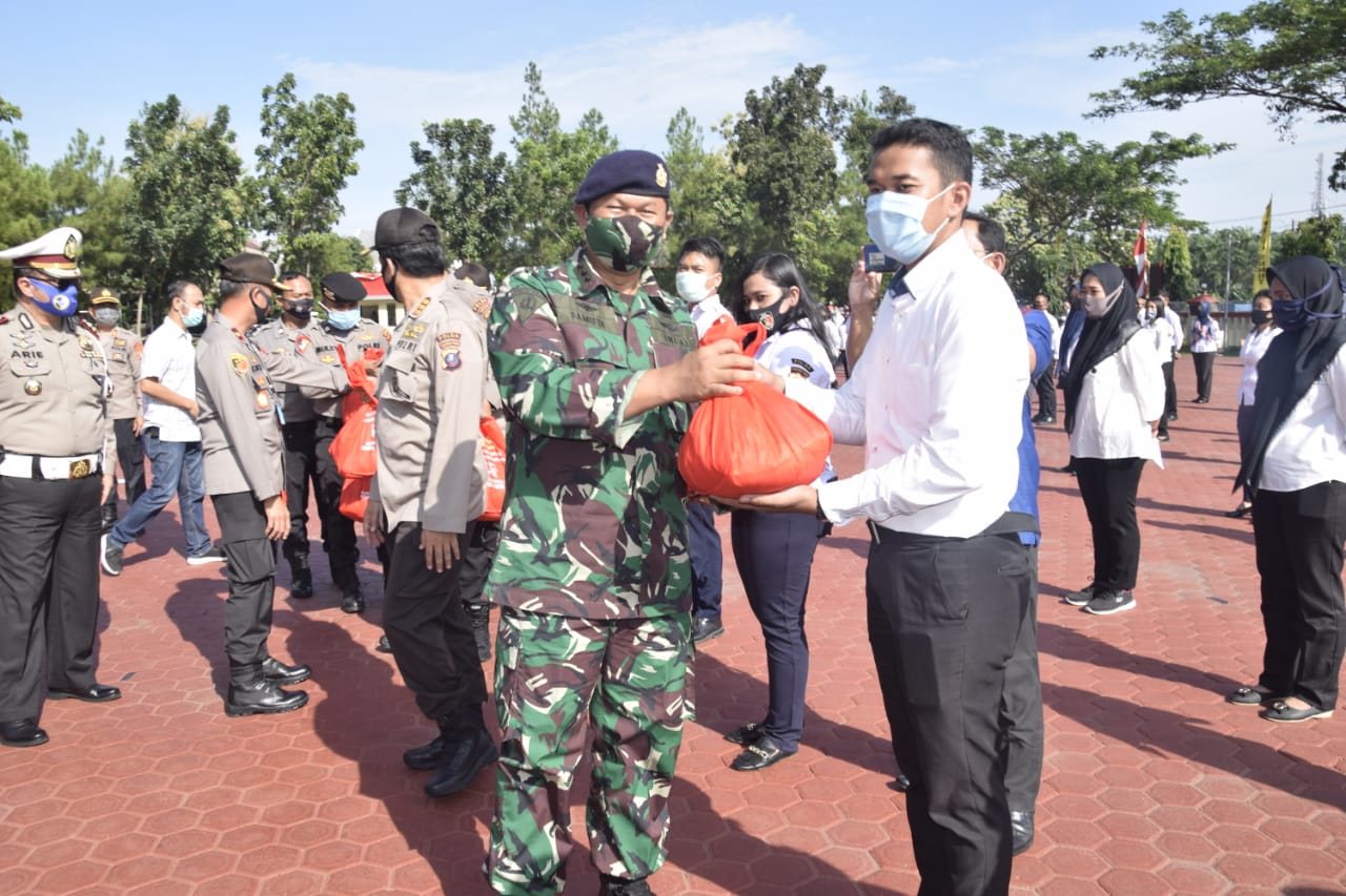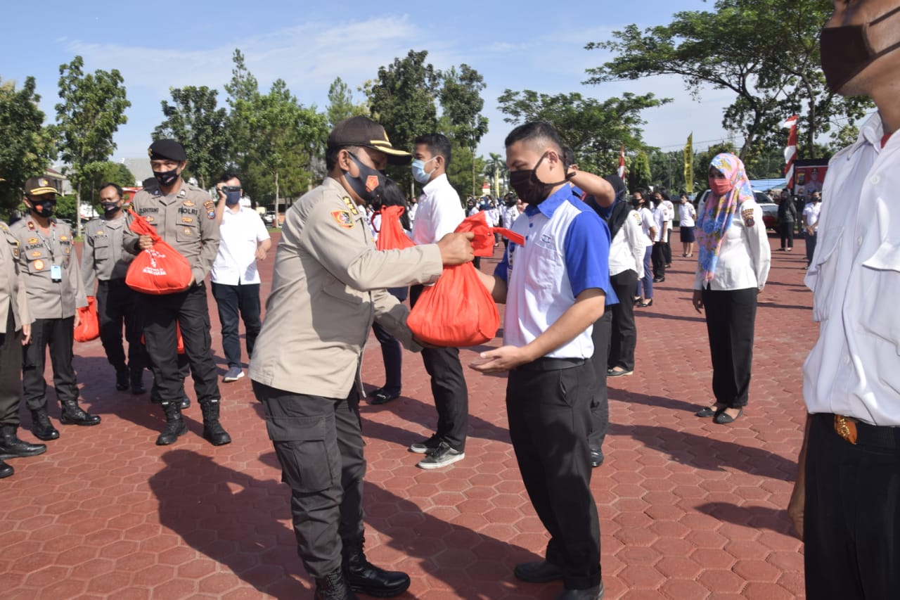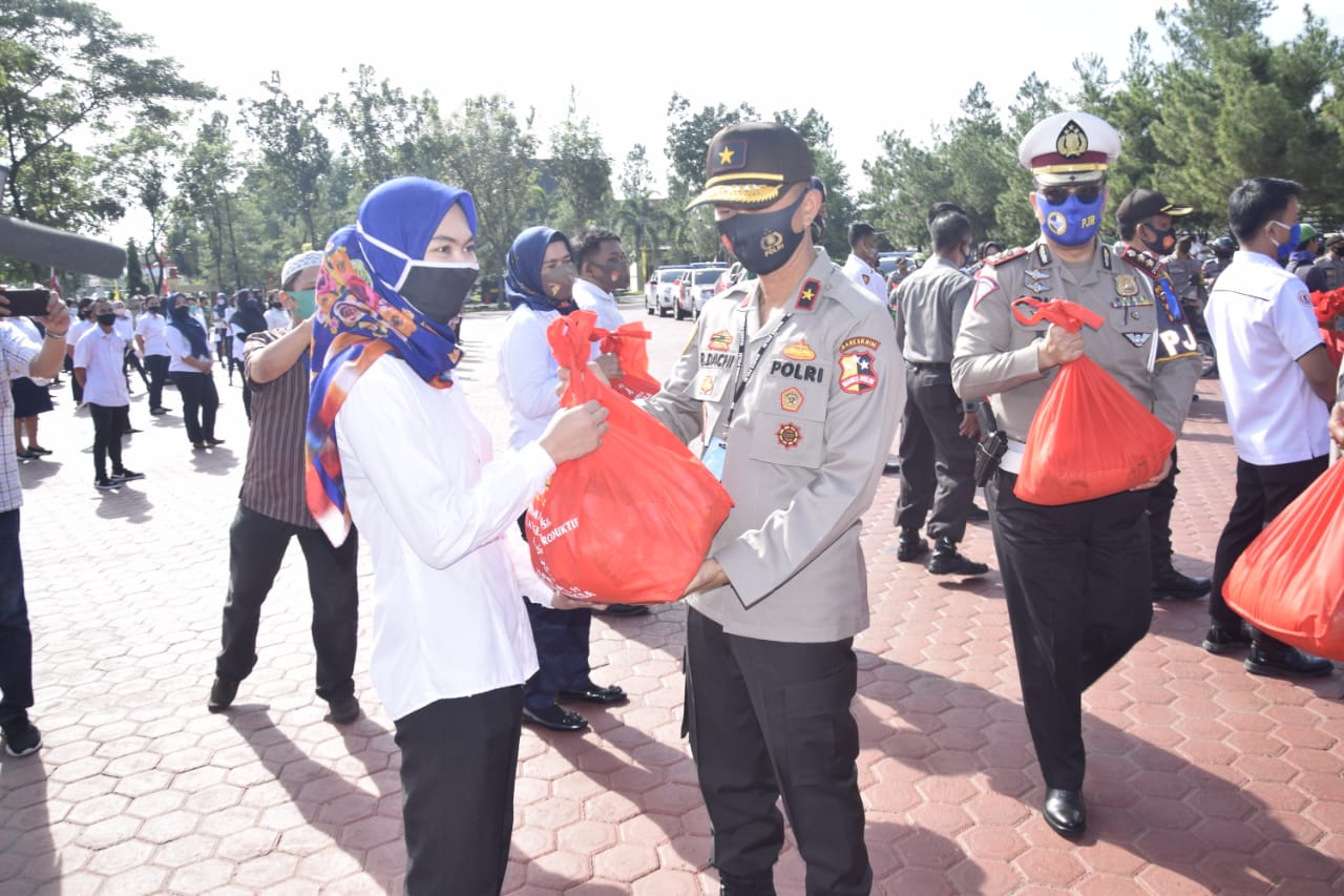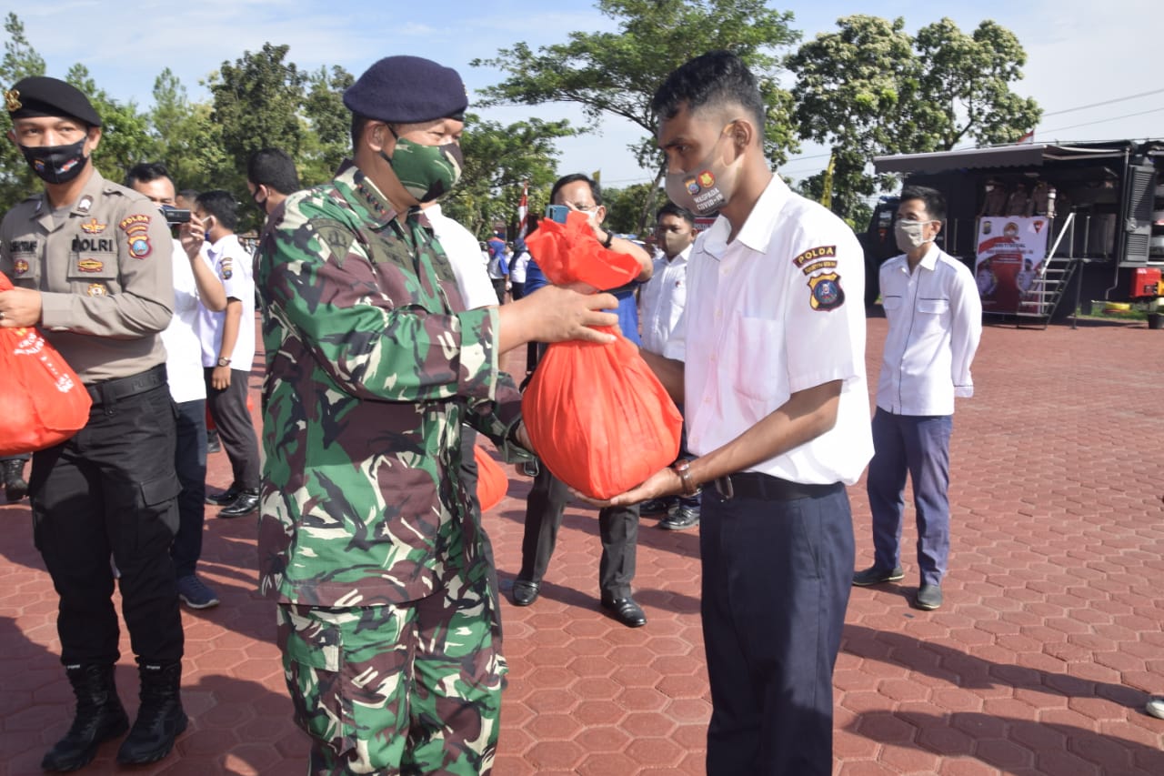 Dengan pembagian paket Sembako tersebut secara simbolis diberikan dari masing-masing perwakilan Satker (Satuan Kerja) penerima bantuan sosial (Bansos) di lingkungan Poldasu.