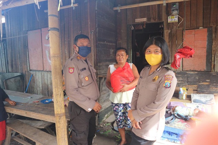 “Sembako yang dibagikan sebanyak 30 Paket sembako kepada masyarakat kurang mampu terdampak Covid-19, sebelas paket sembako di Lingkungan V Kelurahan Tualang dan sembilan belas paket sembako di Lingkungan I Kelurahan Melati I,” kata Kapolres AKBP Robin Simatupang. (Hum. PS)