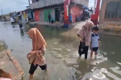 Banjir tak hanya menggenangi rumah warga, namun juga sampai ke jalan raya. Warga berharap pemerintah dapat membuat bendungan, meninggikan jalan, dan memperbaiki saluran drainase, serta mencari solusi agar banjir rob yang selalu melanda permukiman tersebut segera teratasi.(TP/tra-si)