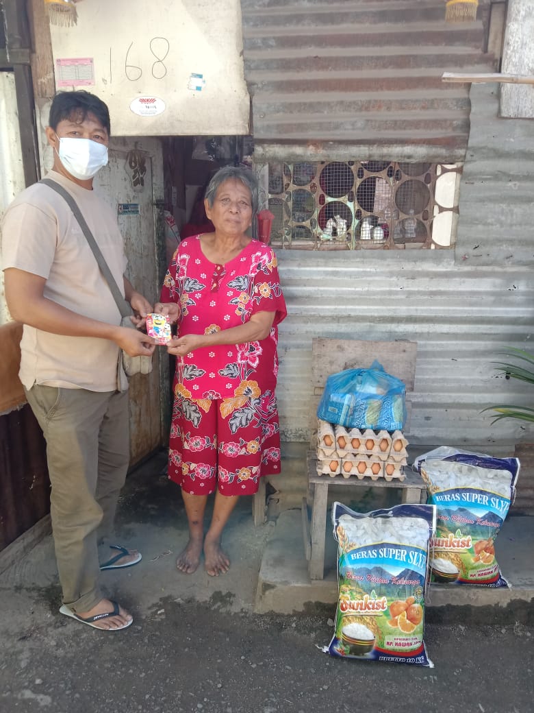 Bansos ini kita antar langsung kepada yang layak menerimah nya. Seperti ibu Tju giok kim (72),seorang janda yang tinggal dengan cucu nya.