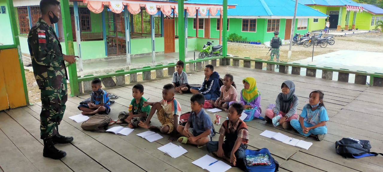 Dalam kegiatan tersebut, 4 personel Pos Arso yakni Serda Boang Manalu, Praka Vidiantoro , Pratu Fengki Setyawan sebagaintenaga pendidik yang sudah disiapkan untuk membagikan dan mengajari ilmu pengetahuan kepada anak anak khususnya diperbatasan, mereka memberikan pelajaran berhitung, menulis, membaca dan dibimbing mengerjakan PR sekolahnya bersama-sama.