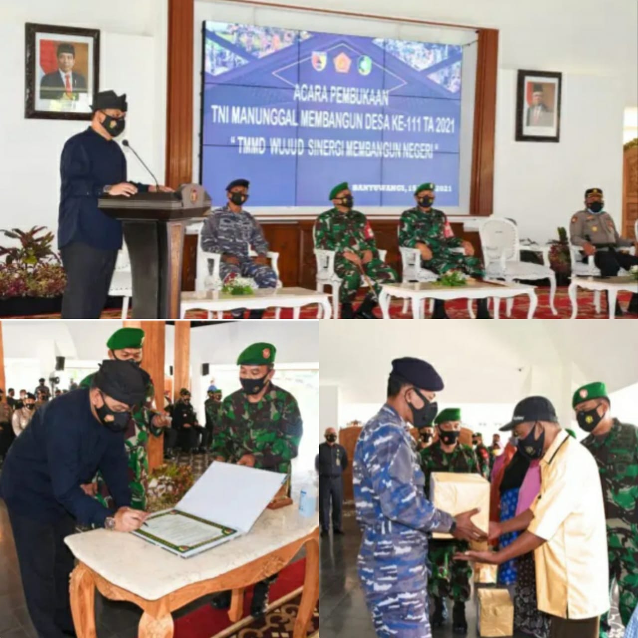 BANYUWANGI | TRANSPUBLIK.co.id –Dengan mengusung tema “TMMD Wujud Sinergi Membangun Negeri” yang diprakarsai Korem 083/BDJ pada TMMD ke-111 Tahun 2021 yang dibuka Asisten Bidang Pemerintahan Sekda Kab. Banyuwangi Drs. Sih Wahyudi, M.M di Pendopo Sabha Swagata Blambangan Banyuwangi, Selasa (15/6/2021).