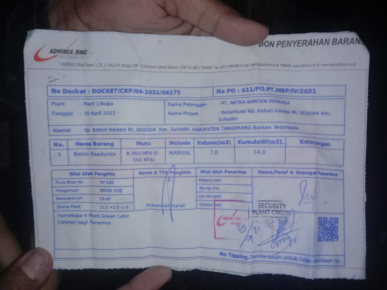 Proyek betonisasi aspirasi Pagu Dewan DPRD PDIP SUPARDI DAPIL 4 yang dikerjakan oleh PT. MITRA BANTEN PERKASA. dengan ketebalan 15 centimeter Namun, fakta di lapangan tidak sesuai spesifikasi.