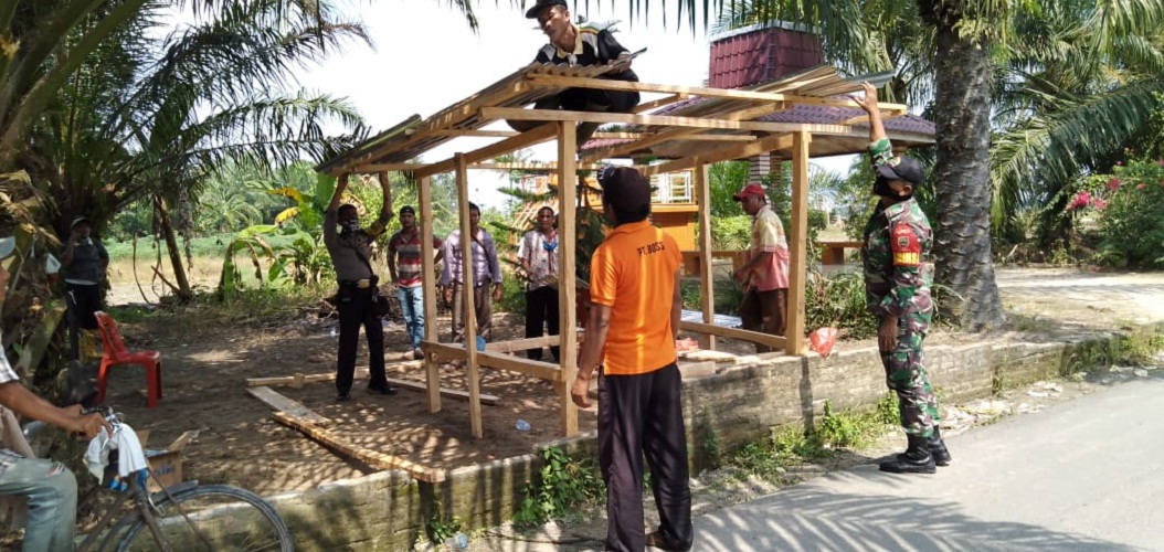 Bhabinkamtibmas dan Bhabinsa Bersinergi Bangun Posko Percepatan Covid-19 di Desa Batu XIII
