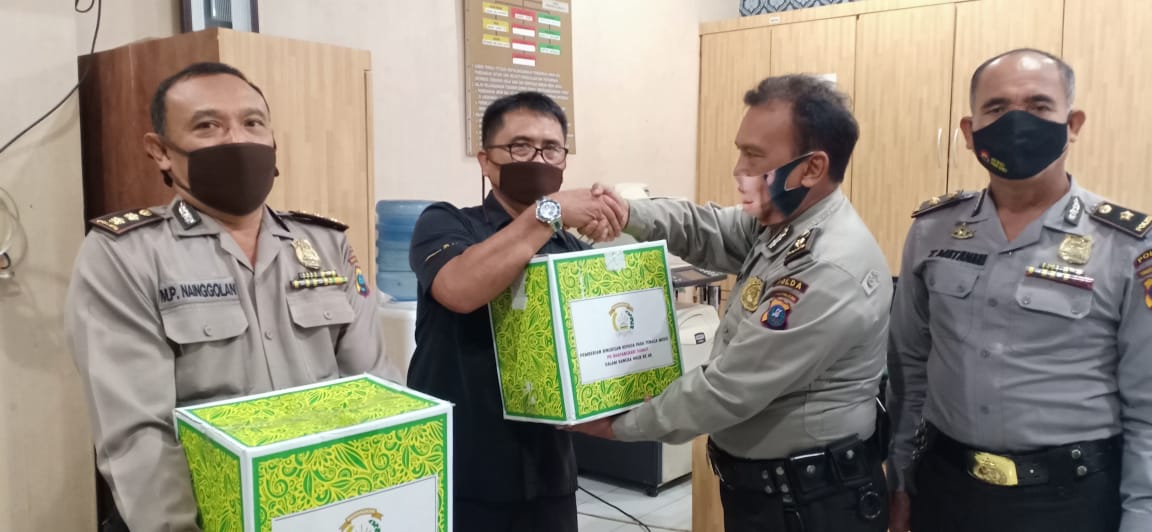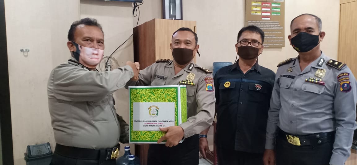 MEDAN | TRANSPUBLIK.co.id – Dalam rangka Hari Kesatuan Gerak Bhayangkari (HKGB) Pimpinan Daerah Sumut Bhayangkari Ny Risma Martuani Sormin menyerahkan Bansos bagi para tim medis pada Jum’at (3/7/2020).