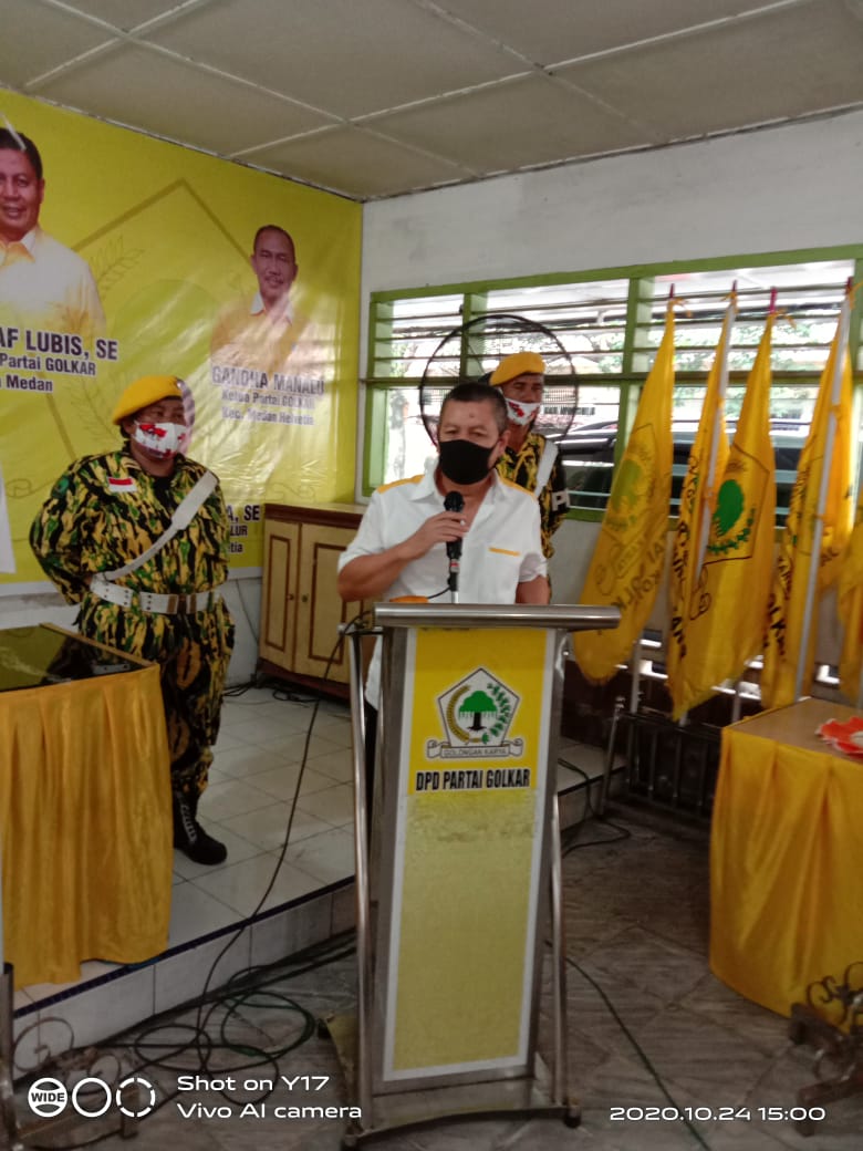 “Saya bangga, selaku bekas anak jalanan, hari ini saya menjadi ketua dan genap 32 tahun sudah perjalanan saya berkarir di organisasi. Debut saya menapak karir dari paling bawah sebagai anggota humas Sub Rayon AMPI kelurahan Kesawan, selanjutnya dipercaya menjadi Ketua Rayon Medan Barat du priode berturut turut.Kemudian Tahun 2000 diangkat menjadi Ketua DPD AMPI Kota Medan dua priode, Ketua AMPI Sumut dan sekarang Ketua Golkar Medan tiga priode,” ungkapnya.