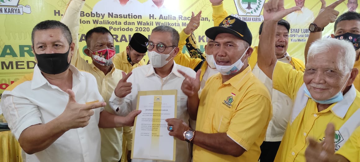 Sementara itu, dengan dikomandoi Bung Lamganda Manalu, keluarga besar Partai Golkar se Kecamatan Medan Helvetia, dengan semangat juangnya menyampaikan deklarasi kebutalan tekadnya untuk memenangkan Paslon Bobby Aulia sebagai Walikota – Wakil Walikota Medan periode 2020 – 2025.