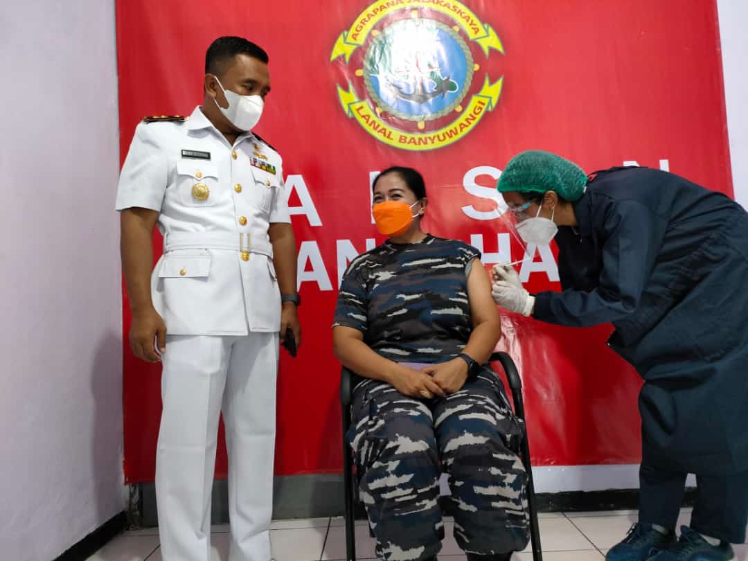BANYUWANGI | TRANSPUBLIK.co.id -Dalam rangka mensukseskan Program pemerintah seluruh Prajurit Lanal Banyuwangi melaksanakan Vaksinasi Covid-19, di Balai Pengobatan Lanal Banyuwangi Jl. Raya Situbondo, Desa Ketapang, Kec Kalipuro. Jumat (26/02/2021).
