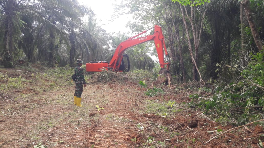 LANGKAT|TRANSPUBLIK.co.id – Pembukaan badan jalan sepanjang 3000 meter di Dusun V Cinta Maju Desa Lama Kecamatan Hinai Kabupaten Langkat,Kodim 0203/Langkat mengerahkan alat berat.