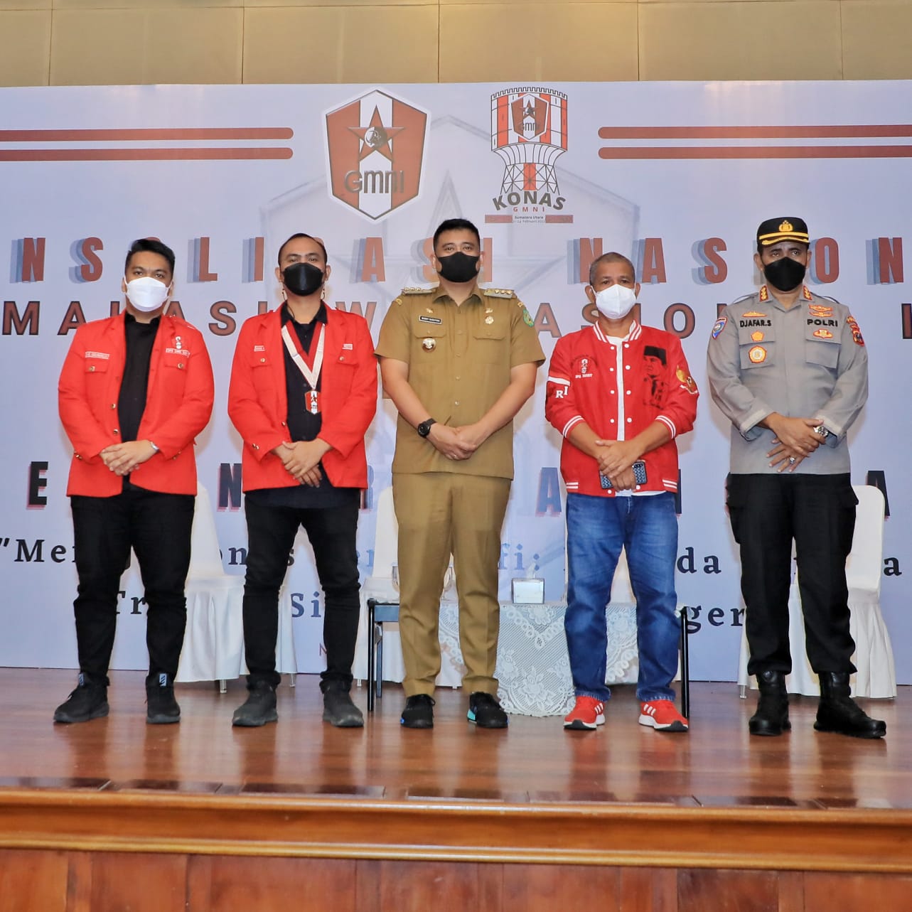 MEDAN | TRANSPUBLIK.co.id – Wali Kota Medan Bobby Nasution membuka secara resmi Konsolidasi Nasional (Konas) Gerakan Mahasiswa Nasional Indonesia (GMNI) di Wisma Benteng, Medan, Senin (21/2). Diharapkan pertemuan ini dapat menghasilkan rasa nasionalisme yang tinggi dari para generasi muda bangsa Indonesia guna meningkatkannya rasa persatuan dan kesatuan.