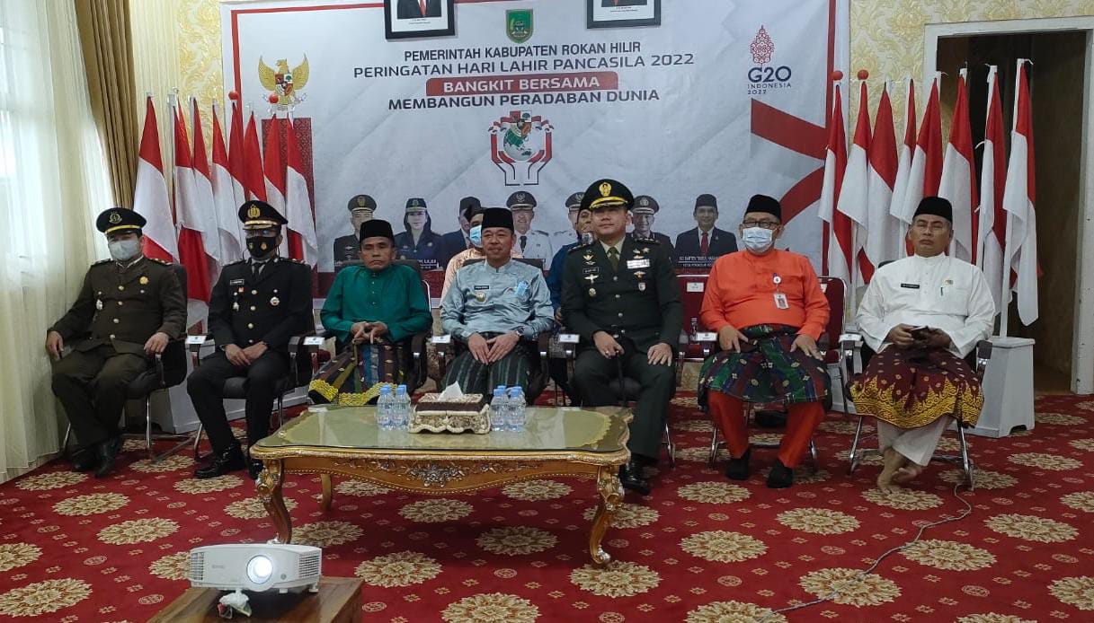 BAGANSIAPIAPI | TRANSPUBLIK.co.id – Bertempat di Mess Pemda Kantor Bupati, Rabu (1/6/2022), Bupati Rokan Hilir, Afrizal Sintong., bersama anggota Forum Komunikasi Daerah (Forkopimda) dan kepala OPD mengikuti upacara Peringatan Hari Lahir Pancasila yang digelar secara virtual dan dipimpin langsung oleh Presiden Joko Widodo dari Kota Ende, Nusa Tenggara Timur.