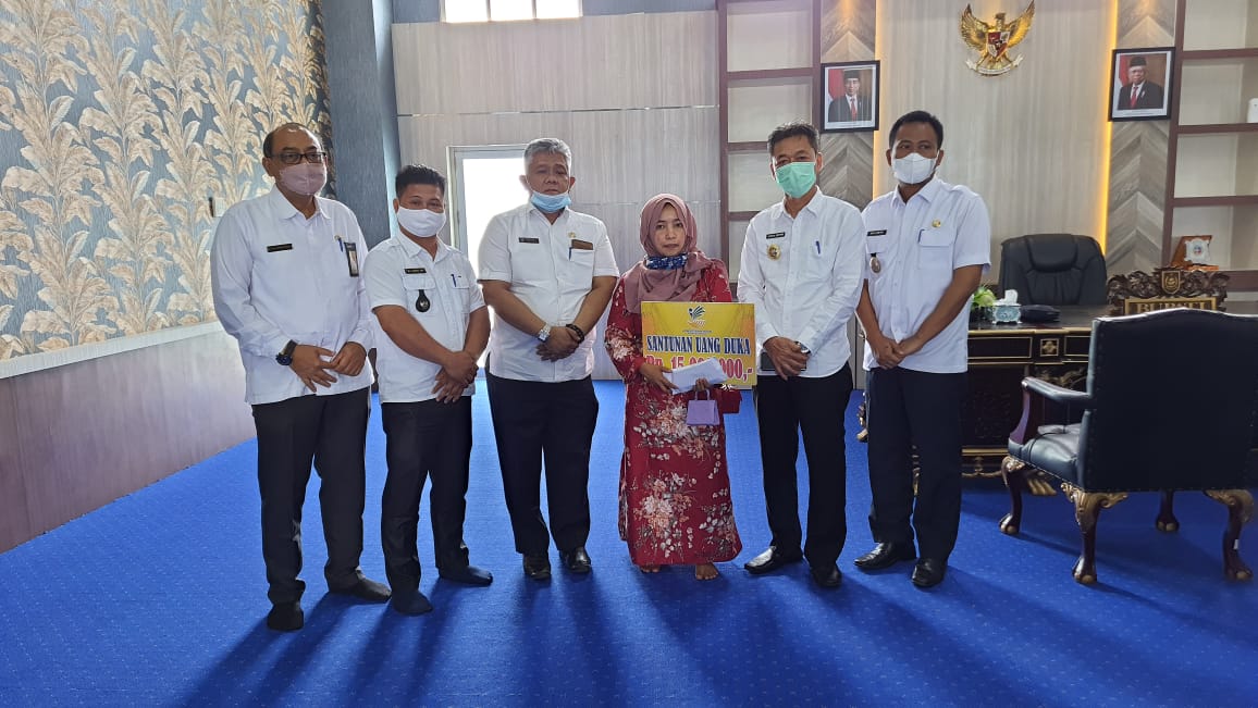 Penyerahan santunan yang dilaksanakan di Lantai 8 kantor Bupati tersebut juga dihadiri Asisten l Fery H Parya, Kadinsos Junaidi Saleh, Kadishub Jasrianto, Kepala BPBD Hari D Putra serta beberapa unsur lainnya. Sementara santunan langsung diterima istri korban.