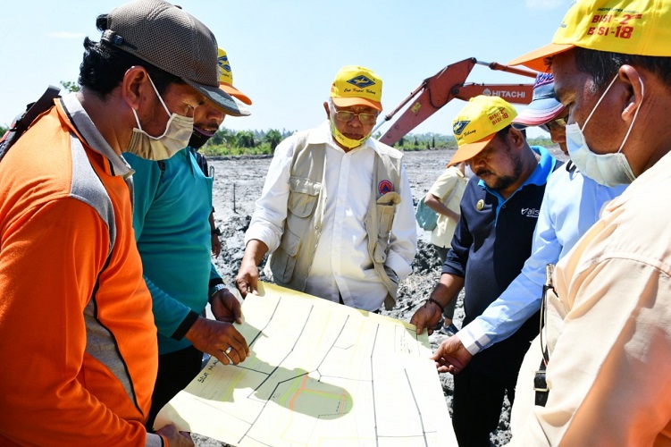 SERGAI | TRANSPUBLIK.co.id – Bupati Sergai meninjau Lahan Cetak Sawah di Dusun IV, Desa Pematang Kuala, Kecamatan Teluk Mengkudu, Kabupaten Sergai, Jumat (17/7/2020).