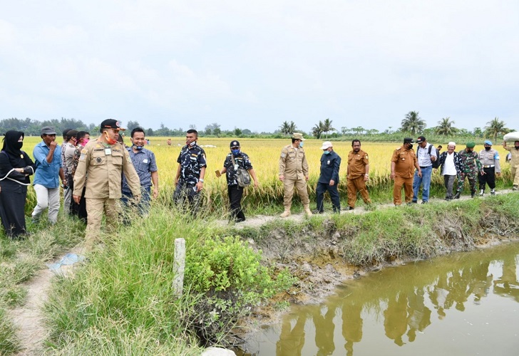 SERGAI | TRANSPUBLIK.co.id – Bupati Sergai meninjau Panen Perdana Sei Nagalawan yang bertempat di Dusun III, Desa Sei Nagalawan, Kecamatan Perbaungan, Kabupaten Sergai, Senin (20/7/2020).
