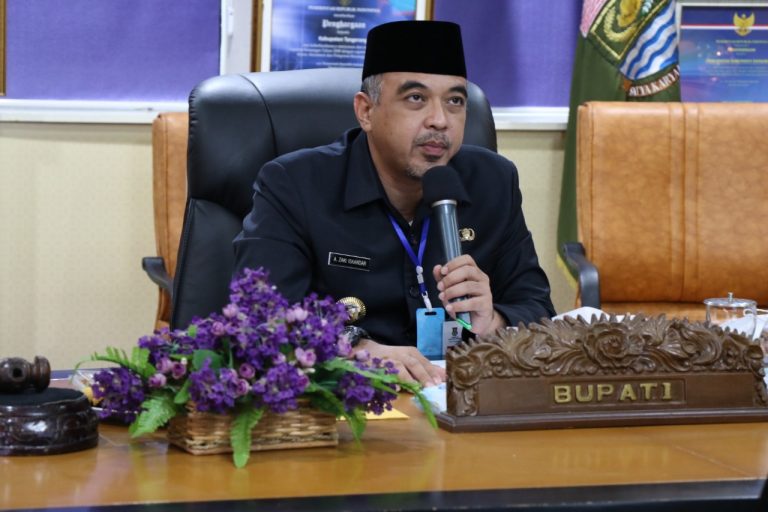 TANGERANG | TRANSPUBLIK.co.id Bupati Tangerang A. Zaki Iskandar mengikuti acara pembagian sertifikat tanah oleh Presiden Joko Widodo secara virtual untuk 584.407 sertifikat tanah, Bupati Zaki mengikuti acara tersebut melalui zoom meeting di Kantor Kecamatan Kelapa Dua Kab. Tangerang, Selasa (5/1/21/21).
