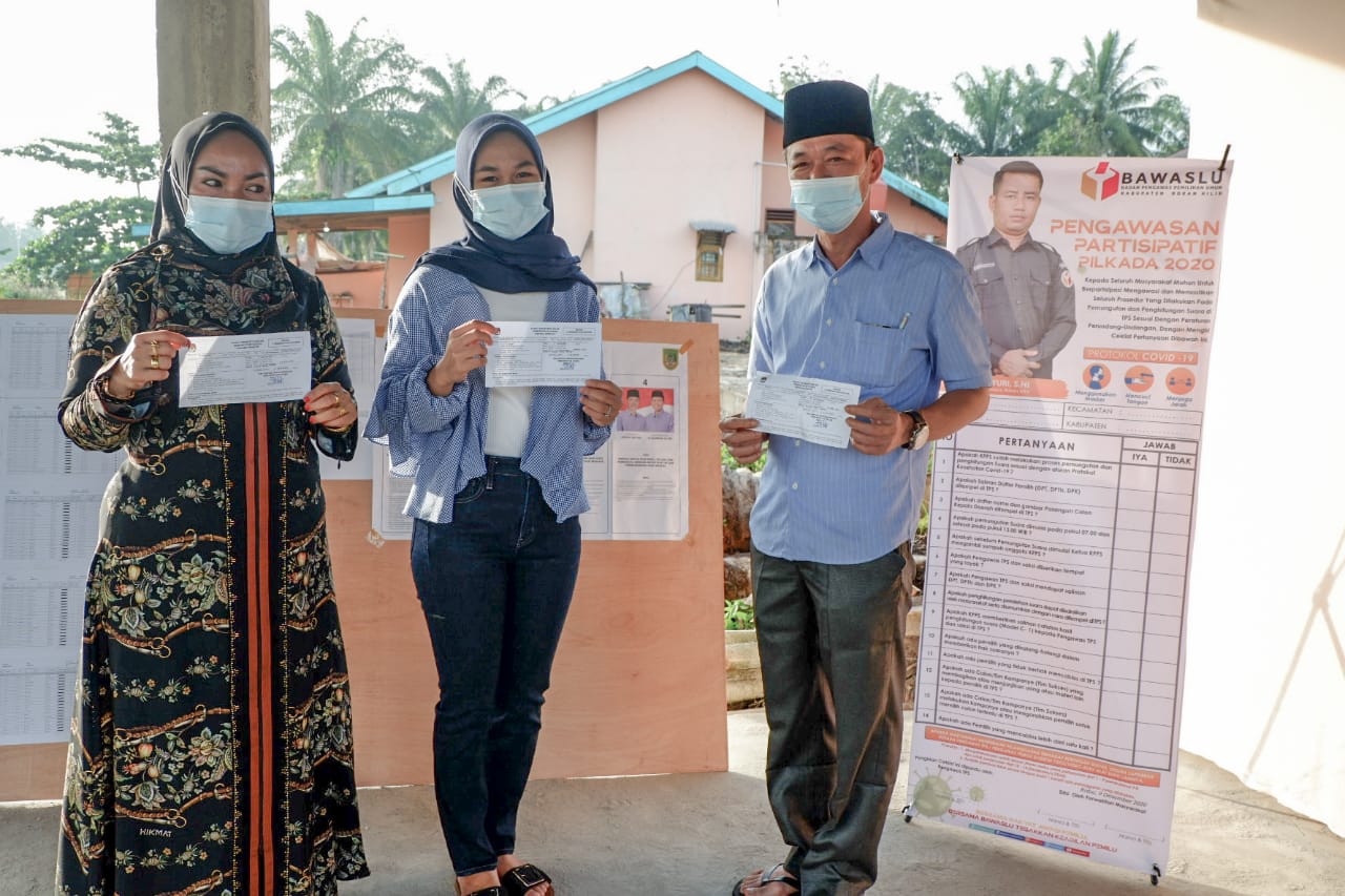 ROKAN HILIR | TRANSPUBLIK.co.id -Calon Bupati Rokan Hilir ( Rohil ) dari nomor urut 4, Afrizal Sintong didampingi istri tercintanya Sanimar SPd dan putri sulung nya, Nalladiya Ayu Rokan, pada Rabu (9/12/2020) sekira pukul 08.00 Wib, menggunakan hak suara memilih di TPS. 02, Kepenghuluan Sintong Bakti, Kecamatan Tanah Putih, Rokan Hilir.