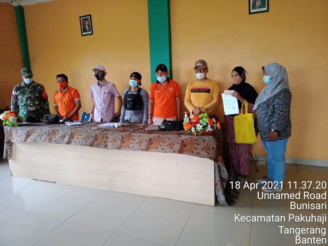 TANGERANG | TRANSPUBLIK.co.id – Pendistribusian Bantuan Sosial Tunai (BST) atau Jaringan Pengaman Sosial (JPS) Kecamatan Pakuhaji yang diadakan di kantor Kelurahan Pakuhaji, Kabupaten Tangerang, Provinsi Banten, Minggu, 18 April 2021.