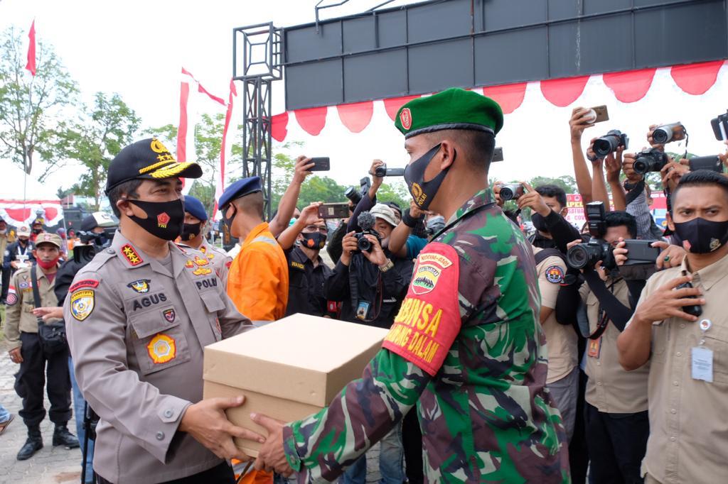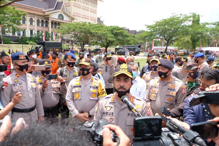 PEKANBARU | TRANSPUBLIK – Kabaharkam Polri Komjen Pol Drs Agus Andrianto SH MH memimpin langsung Apel Kesiapsiagaan Satgas Relawan Karhutla dan Covid-19 bertempat di Lapangan Purna MTQ yang merupakan Posko Karhutla dan Covid-19 Provinsi Riau Jalan Jenderal Sudirman Pekanbaru, Kota Pekanbaru, Riau, pada Selasa (25/8/2020).