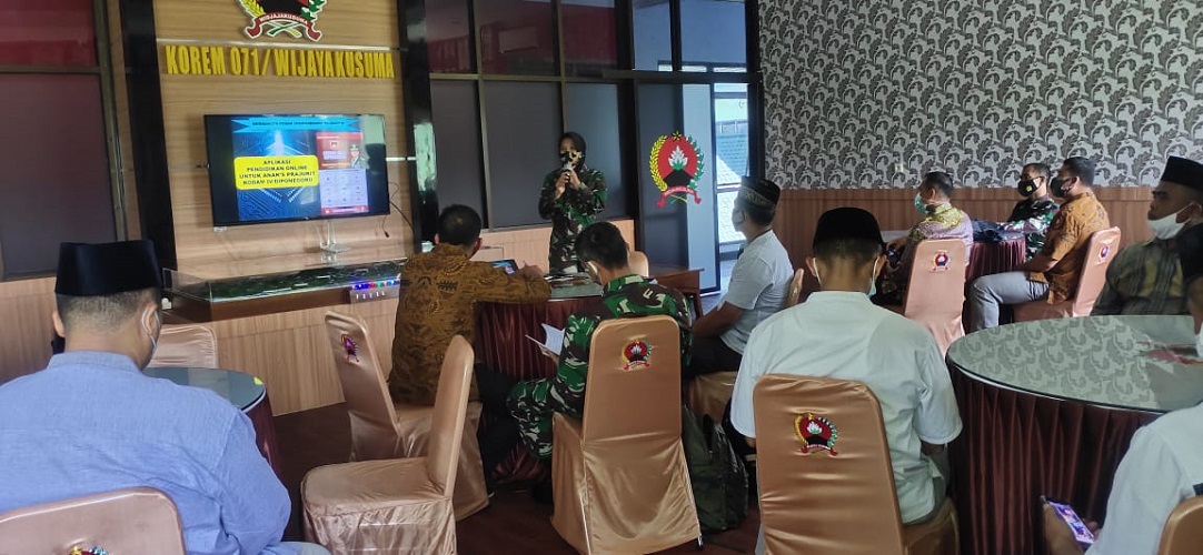 BANYUMAS | TRANSPUBLIK.co.id – Dalam rangka turut serta mencerdaskan anak bangsa khususnya bagi anak-anak prajurit dilingkungan Kodam IV/Diponegoro, Korem 071/Wijayakusuma sosialisasikan Aplikasi Cerdas Anak Diponegoro, Jumat (16/4/2021) di Aula Jendela Sudirman, Makorem 071/Wijayakusuma Sokaraja, Banyumas.