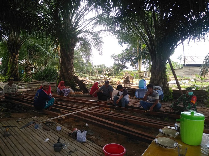 Pertepatan dengan hari lahir Pancasila Babinsa membantu warga dengan membangun rumah di RT 04 Kelurahan Pejala Kecamatan Penajam Kabupaten Penjam Paser Utara (PPU), Senin (1/6/2020).