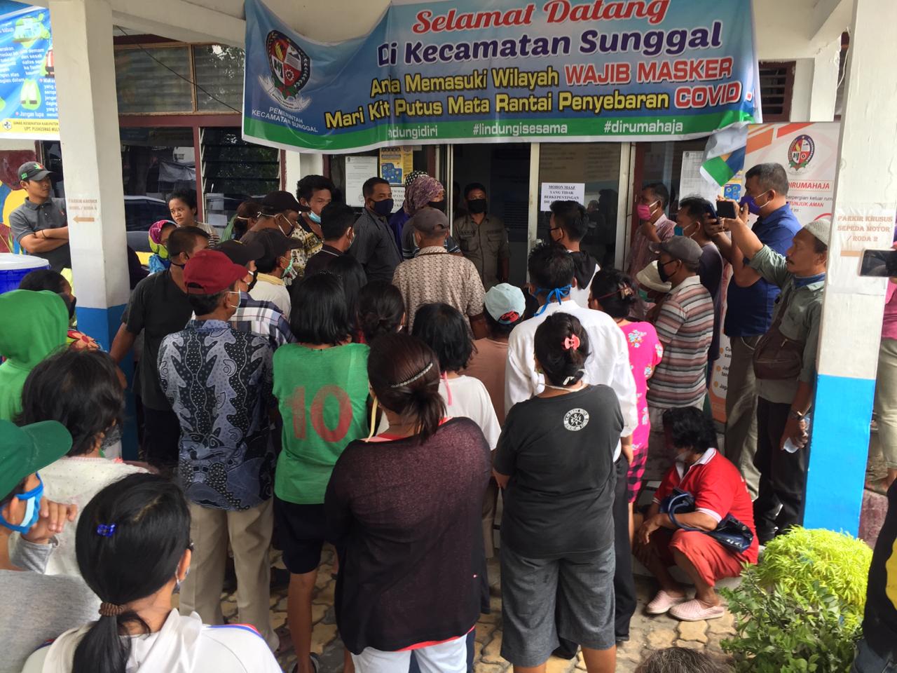 DELI SERDANG | TRANSPUBLIK.co.id – Sambangi Kantor Kecamatan Sunggal Deli Serdang, Selasa (19/5/2020), Warga Desa Purwodadi, Medan Krio bertanya penyaluran Bantuan Dampak Covid-19, dimana warga merasa sangat tidak adil pembagian Paket dari Gubernur hingga Bantuan Sosial Tunai dan Bantuan Langsung Tunai ADD.