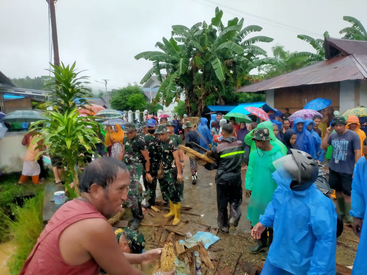 Danki SSK 1 Satgas Yonarhanud 11/WBY Kapten Arh Ari Ristanto mengatakan, personel Pos Ramil Wakal dan Pos Ramil Waitomu sengaja diturunkan guna melakukan penanganan terhadap bencana banjir yang melanda Desa Keititu.
