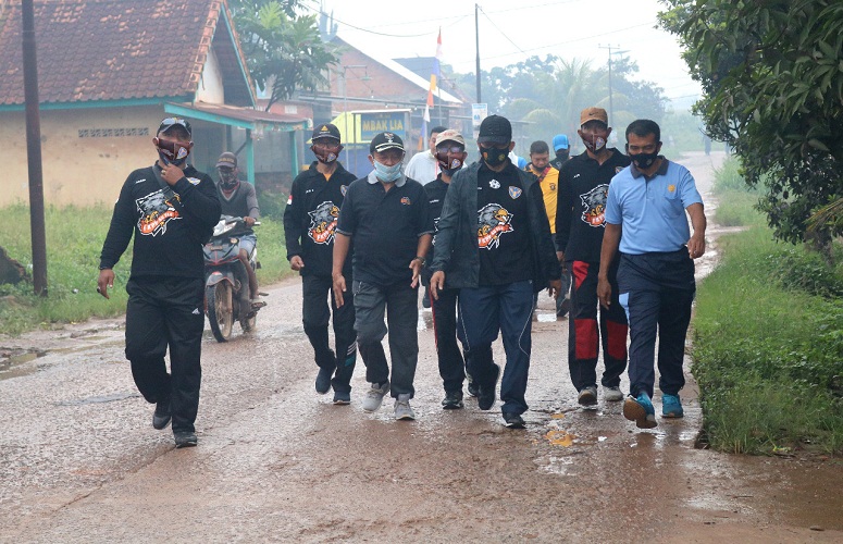 Tampak ikut serta dalam gerak jalan sehat, tuan rumah Ketua FKPP AU Bambang Hery Cahyono bersama seluruh pengurus dan anggotanya. Rute jalan sehat FKPP AU ini akan mengambil rute start di Pos satu Talang Betutu ke arah timur ujung landasan Sultan Mahmud Badaruddin II, melalui Desa Talang betutu, dan finish Desa Sukadamai Taman SAR-PGT.
