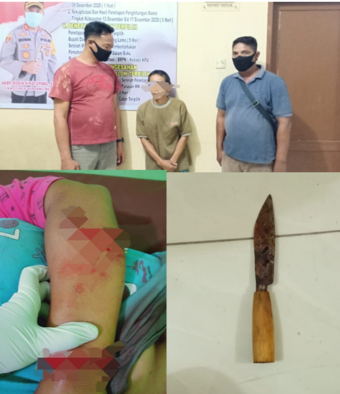 Rusdiaman Saragih alias Ando pelaku penusukan pada saat diamankan Polsek Dolok Masihul, dan Resmina br Purba korban penusukan beserta satu pisau.