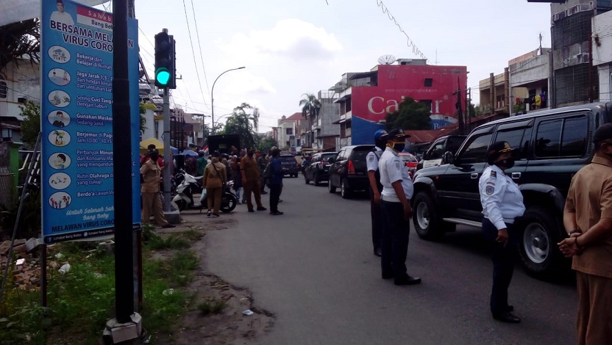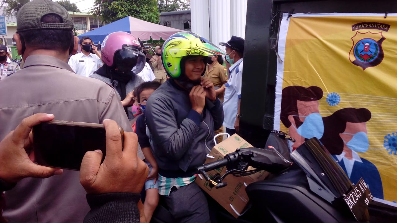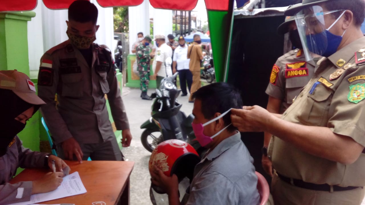 MEDAN | TRANSPUBLIK.co.id Guna untuk memutus mata rantai penyebaran covid-19, dilakukan giat razia masker di Jln Prof HM. Yamin SH yakni di depan Mesjid Pejuang 45. Giat Razia masker ini dilakukan oleh Satpol PP, Kodim 02/01 BS, Anggota Dishub, dan Personil Polsek Medan Timur. “Ada beberapa pengguna R2 sudah terjaring karena tak menggunakan masker,” ucap bapak Sihombing.