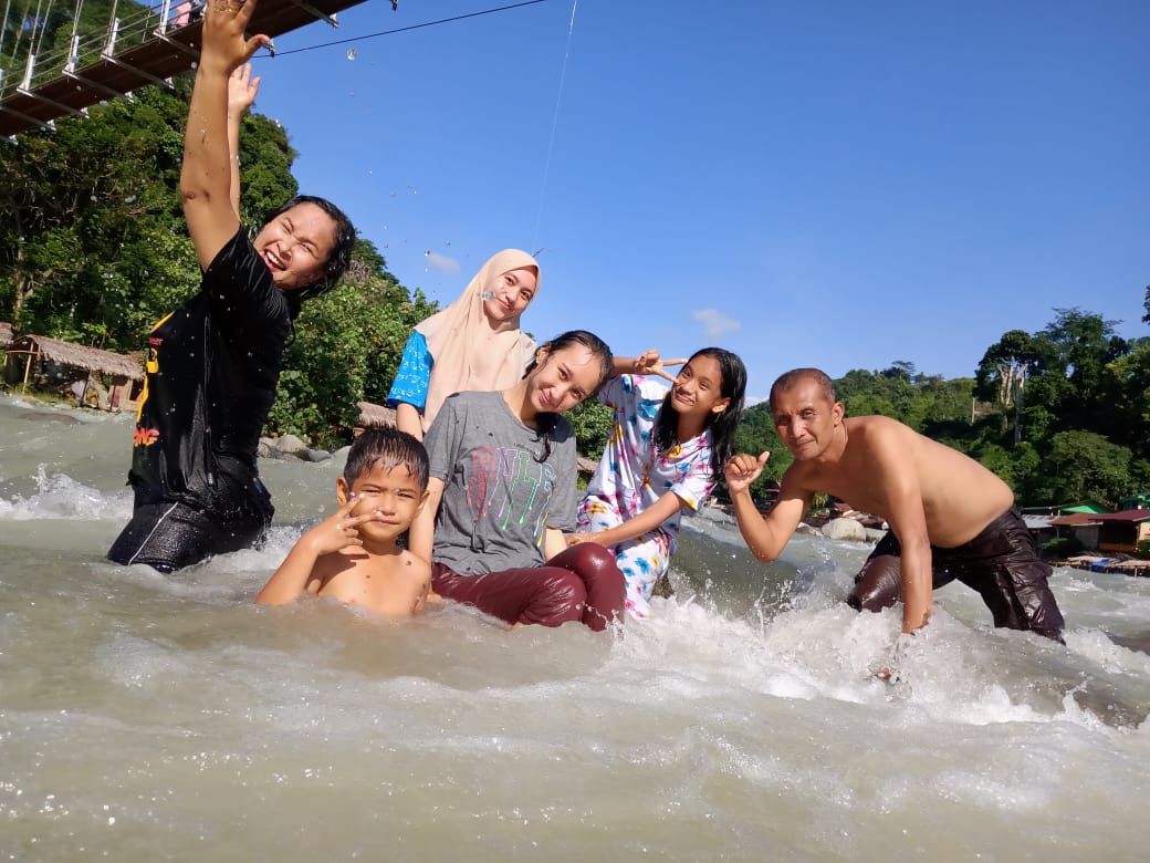 Dilanjuti esok pada hari Minggu, 21 Juni 2020 melakukan foto – foto bermacam gaya Selfi dengan ceria di pemandian pariwisata Bukit Lawang Bahorok para keluarga serta rekan – rekan sahabat.