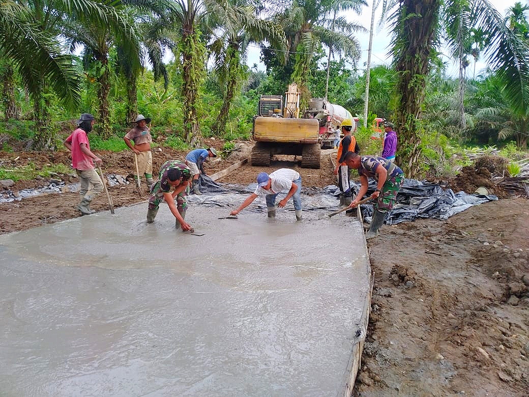 “Hari ini akan kita tambah lagi panjangnya. Mudah-mudahan cuaca mendukung, sehingga perampungan semenisasi jalan ini selesai tepat waktu,” ucap Pawas TMMD Kodim 0204/DS, Kapten Kav Ishak Iskandar dari lokasi.