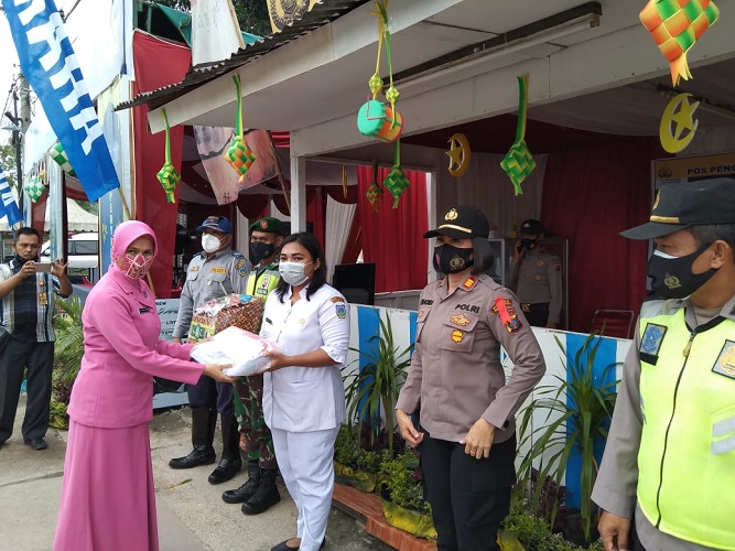 Hari ke-5 Sejak Diberlakukan Penyekatan Kapolres Bersama Ibu Kapolres Kunjungi Pos Penyekatan Sembari Berikan Bingkisan