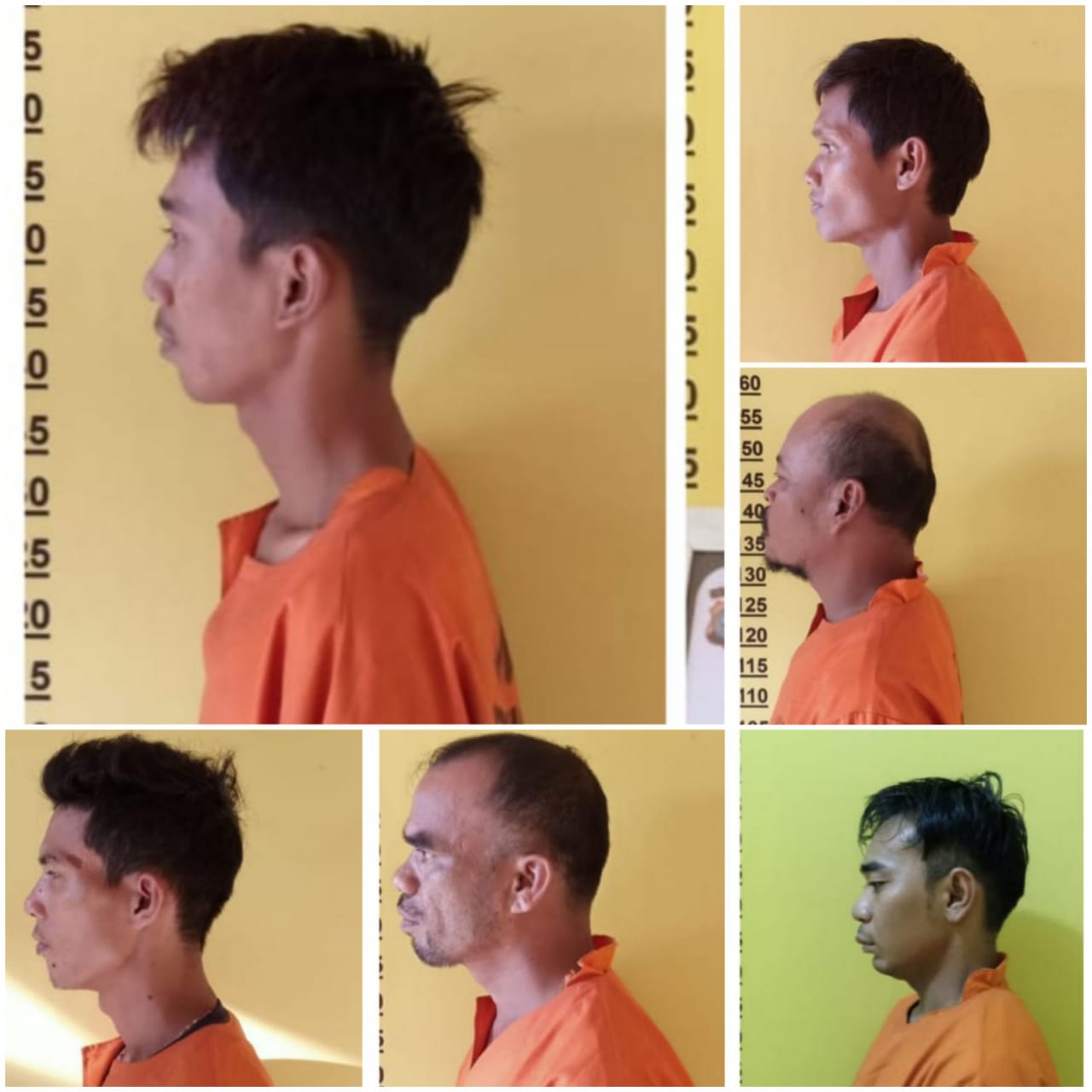Sutarjo alias Sutar (25) warga Jalan Simpang Kanan, Daerah Balam KM 16, Kepenghuluan Bangko Bakti, Kecamatan Bangko Pusako, Kabupaten Rohil. (5). Arianto alias Anto (31) warga Jalan Kanal Daerah Balam KM 16, Kepenghuluan Bangko Bakti, Kecamatan Bangko Pusako, Kabupaten Rohil. (6 ). Sinarya alias Iya (34) warga Jalan Dusun Balam Selatan, RT.005, RW. 002, Daerah Balam KM 13, Kepenghuluan Bangko Bakti, Kecamatan Bangko Pusako, Kabupaten Rohil.