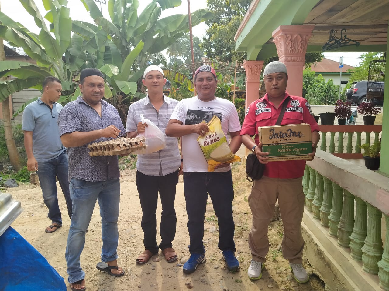 “Sembako berupa beras, mie instan, telur dan minyak goreng serta gula yang kami berikan ini, hasil patungan kami berempat, yang kami beli usai melaksanakan sholat Jum’at berjemaah di Masjid Ashafa, Kec. Bukit Malintang,” sambung Bripka Fadli.