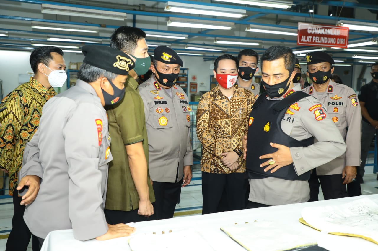 “Kami bersama pejabat utama Korsabhara Baharkam Polri datang ke pabrik dalam negeri untuk cek pesanan Almatsus Korsabhara Polri. Bila produk dalam negeri lebih baik secara kualitas daripada produk luar negeri, kalau bagus, ngapain beli produk luar negeri, dan kita akan dorong terus agar kualitasnya semakin membaik,” kata Komjen Pol Agus Andrianto.
