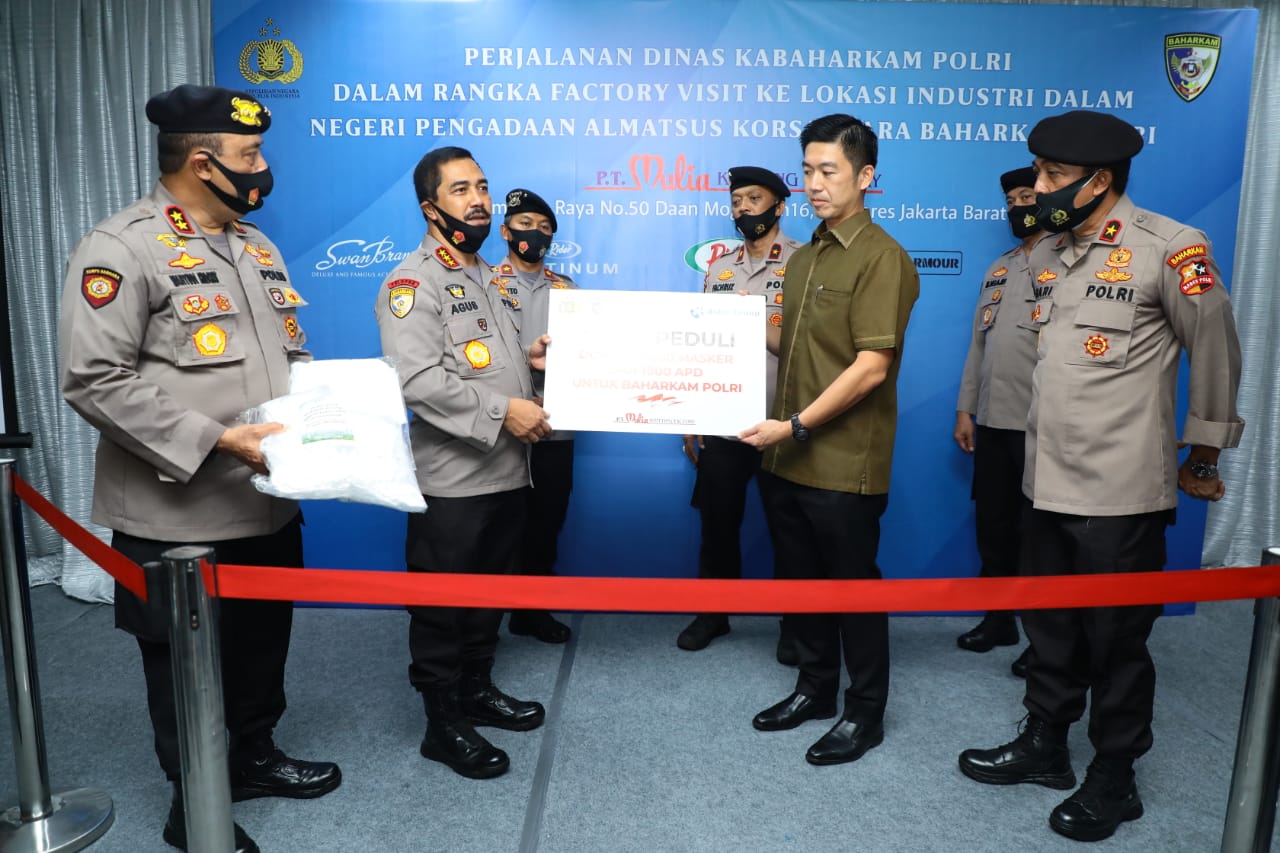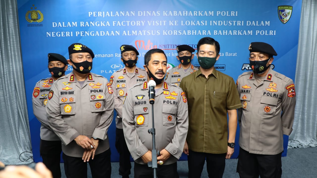 Pada Hari ini, Kamis (13/8/2020), Kabaharkam Polri bersama pejabat utama (PJU) Baharkam Polri mengunjungi perusahaan garmen PT Mulia Knitting Factory (Rider) yang berlokasi di Jalan Semanan Raya Nomor 50, Daan Mogot KM 16, Kota Jakarta Barat, Jakarta.