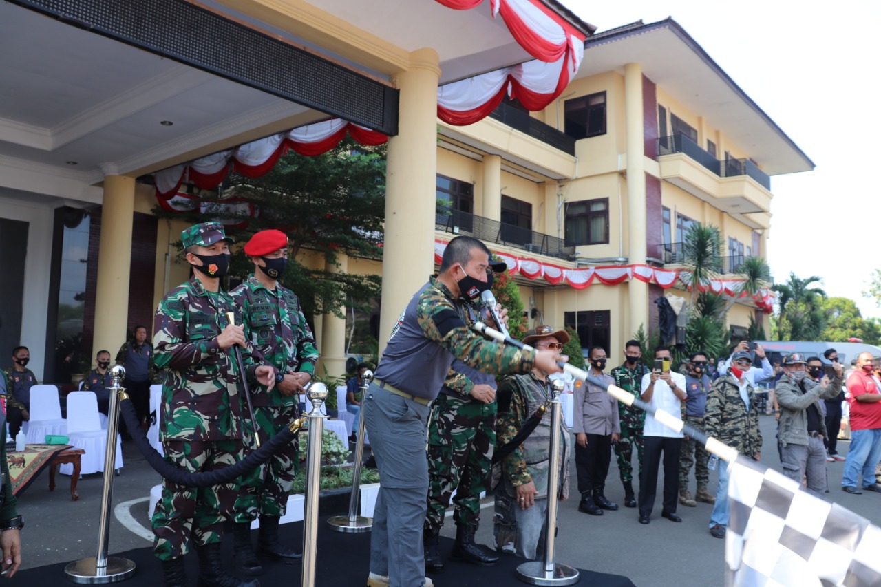 Selanjutnya Fiandar Memberikan Aba-aba hitungan Tiga mundur dan mengucapkan basmallah Wakapolda Banten melepas para peserta Safari Berburu.
