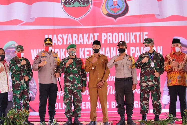 SERGAI | TRANSPUBLIK.co.id – Kapolda Sumut Irjen Pol. Drs. Martuani Sormin, M.Si bersama Pangdam I/BB Mayjen TNI Irwansyah, MA, MSc, Bupati Sergai Ir. H. Soekirman dan Kapolres Sergai AKBP Robin Simatupang SH, MHum meresmikan kampung paten desa bertuah Desa Bingkat, Kec. Pegajahan, Kab. Serdang Bedagai, Kamis (9/7/2020).