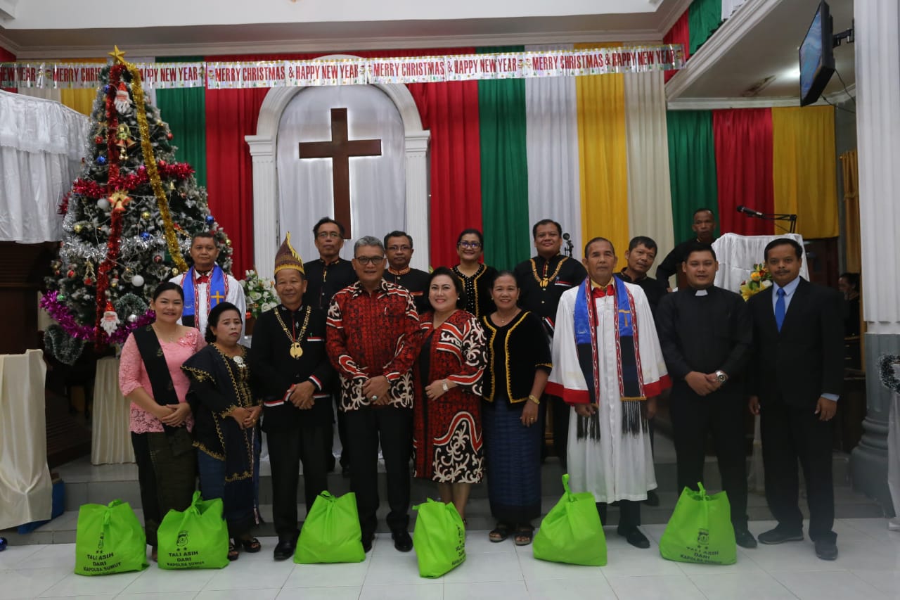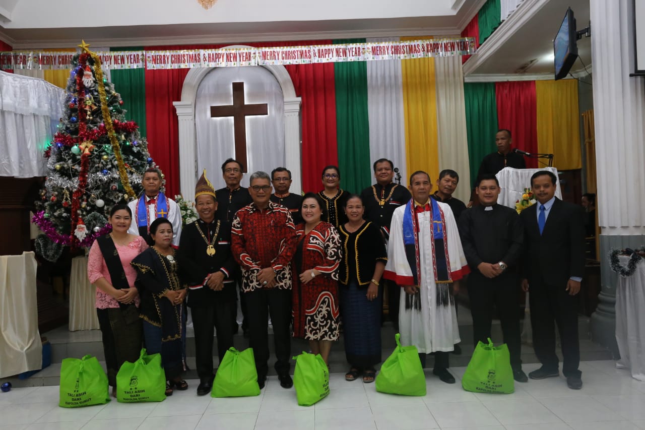 Tidak lupa juga dalam kegiatan ini, Kapoldasu dan Ibu Ketua Bhayangkari Cabang Sumut juga memberikan sembako kepada seluruh jemat dan memberikan tali asih kepada para pengurus GKPPD (Gereja Kristen Protestan Pakpak Dairi). (leo depari)