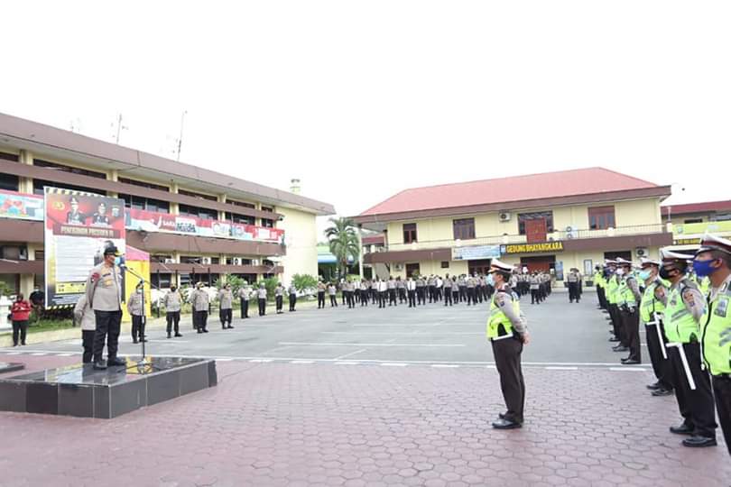 Turut serta dalam kegiatan dalam Apel bersama unit Polantas juga seluruh Perwira Jajaran Polrestabes Medan dengan memberikan himbauan Arahan di Mapolrestabes Medan.