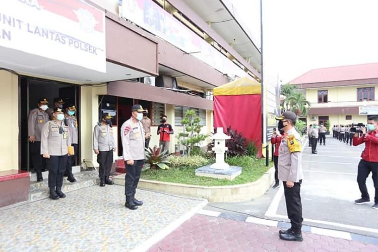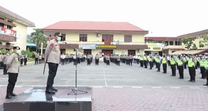 MEDAN | TRANSPUBLIK.co.id — Polrestabes Medan | Dalam rangka Apel langsung di Pimpin oleh Kapolda Sumut Irjen Pol Drs Martuani Sormin Siregar MSi di Mapolrestabes Medan, Senin (13/4/2020).