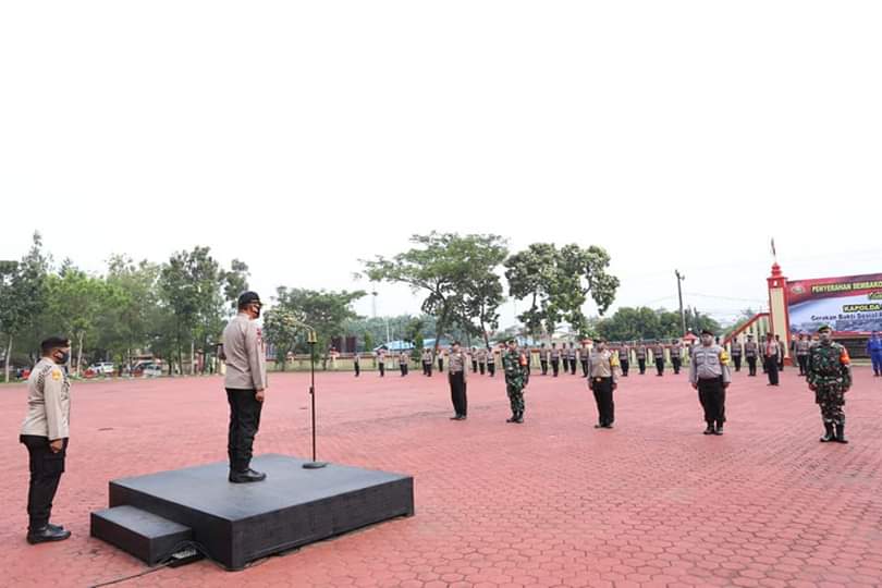 MEDAN | TRANSPUBLIK.co.id – Kapolda Sumut dalam Pimpin Apel Upacara sekaligus penyerahan piagam penghargaan pada personil TNI – Polri pada Kamis (23/4/2020) di Lapangan KS Tubun Mapolda Sumut.